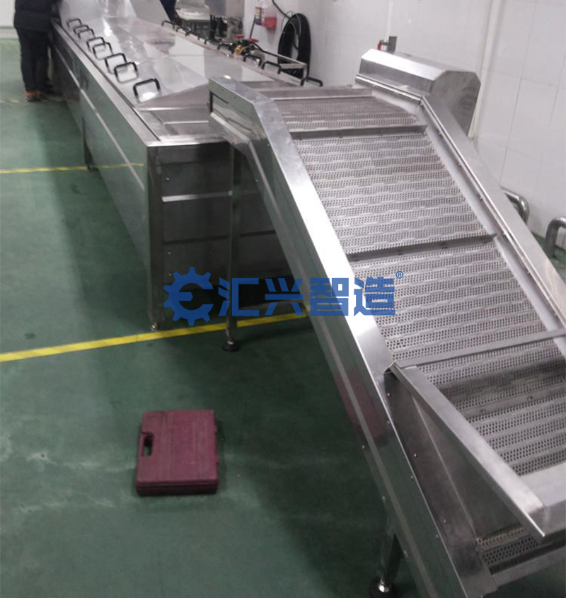 本流水線是由氣泡清洗段、高壓噴淋清洗段、成品挑選區等組成。物料通過氣泡清洗段,刷洗生姜表面的大部分泥沙,自動提升到高壓清洗環節,進行生姜的徹底清洗,噴淋段采取可調節噴頭,控制噴頭出水量,更好地保護生姜表皮,達到產品出口標準要求。 滾杠式噴淋清洗機 該流水線是由輸送區、清洗區、瀝水區及循環水處理區等組成。物料在清洗過程中360度旋轉,多方位無死角清洗,徹底解決了傳統清洗機設備保潔難、次生污染嚴重的問題。 網帶式清洗機采用高壓氣泡水浴清洗,清洗能力大、洗凈率高且不損傷物料,物料經網帶輸送至噴淋清洗后進入下道工序。 噴淋式清洗機 采用高壓噴淋清洗,清洗能力大、洗凈率高且不損傷物料,特別適合嬌嫩果蔬,雜質多、難去除的食品清洗,可與篩板、網帶式清洗機組合使用。