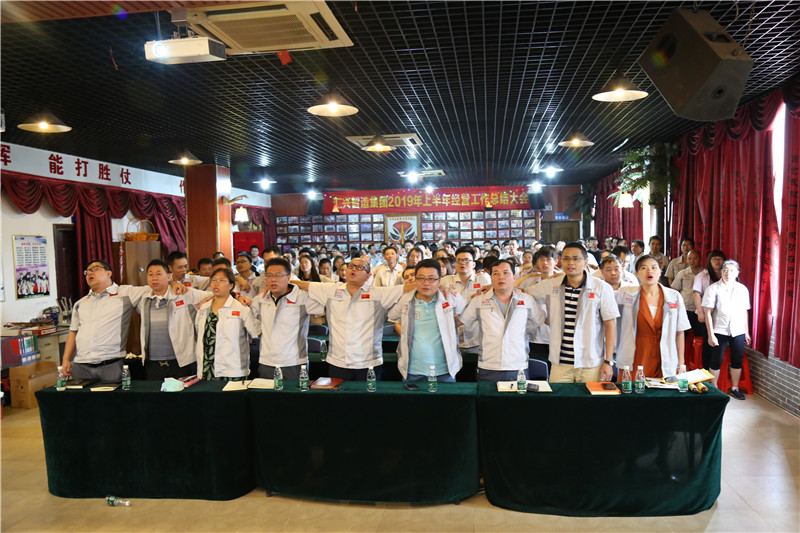 大會(huì)最后一項(xiàng)議程由董事長(zhǎng)鐘輝作2019年上半年經(jīng)營(yíng)工作總結(jié)以及2019下半年工作部署。鐘董圍繞公司的軟實(shí)力打造和硬實(shí)力建設(shè),要求全體干部和職工在下半年要以只爭(zhēng)朝夕的緊迫感和使命感,狠抓落實(shí)“258行動(dòng)計(jì)劃”。【匯興智造258行動(dòng)計(jì)劃:2:堅(jiān)持企業(yè)硬實(shí)力和品牌軟實(shí)力兩個(gè)基本點(diǎn),堅(jiān)持設(shè)備智造和配件銷售兩條腿走路,堅(jiān)持國(guó)內(nèi)市場(chǎng)和國(guó)外市場(chǎng)兩只手發(fā)力;5:主動(dòng)做好個(gè)人的心態(tài)管理、目標(biāo)管理、時(shí)間管理、學(xué)習(xí)管理、行動(dòng)管理等五項(xiàng)管理;8:主動(dòng)發(fā)揚(yáng)“5+2”、“白+黑”的艱苦奮斗精神,每一位員工都要堅(jiān)守崗位,既要出工,也要出活,特別是領(lǐng)導(dǎo)干部要帶頭利用晚上1小時(shí)進(jìn)行學(xué)習(xí)和總結(jié),確保完成2019年集團(tuán)智能制造板塊2.58億元的經(jīng)營(yíng)業(yè)績(jī)目標(biāo)!】