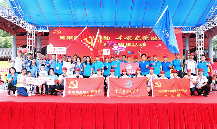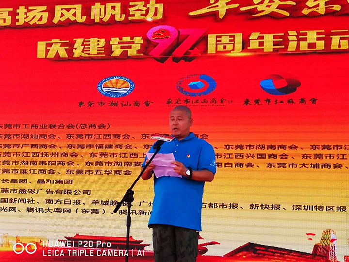 2018年6月30日上午,以“黨旗高揚風帆勁 平安東莞譜華章”為主題的慶祝建黨97周年活動在黃旗公園舉行,本次活動由市工商聯(總商會)指導,東莞市潮汕商會、東莞市江西商會、東莞市江蘇商會發起聯合在莞25家商協會共同主辦。東莞市工商聯(總商會)副主席張軍民、副調研員宋志鋒等領導及近1000名商協會黨員出席活動。