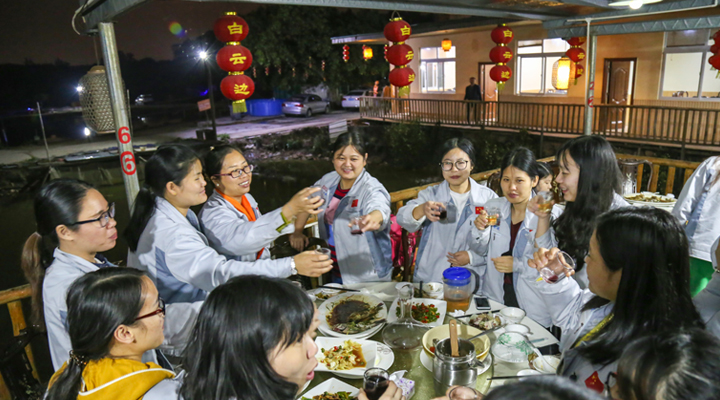 參觀結束后,女同胞們來到了風景優美的農莊享受輕松、愉快的聚會。美女如云,美酒佳肴,歡聲笑語,歡樂開懷。