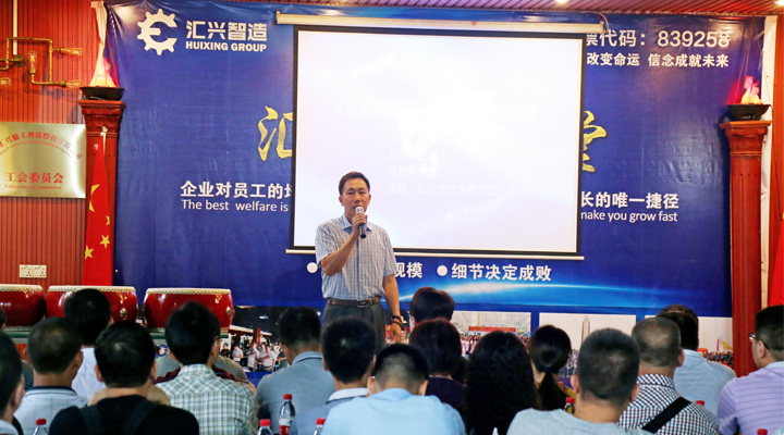 隨后,在董事長鐘輝的帶領下,中共五華縣委員會張愛芳常委、中共五華縣經貿系統工委黃國標書記及五華縣科技骨干團一行走進匯興學校參加座談會。會上,廖仕明主任對此次參觀交流活動發表講話,深刻分析了企業間交流的重要性,提出地方企業要走出去,引進來。隨后由董事長鐘輝就廣東匯興精工智造股份有限公司(股票代碼:839258)對各位嘉賓作詳細的解說,并且介紹企業發展心路歷程,總結表示軟實力是品牌的基礎,現在營商環境下既要樂觀,也要客觀,既要看天氣,更要接地氣。