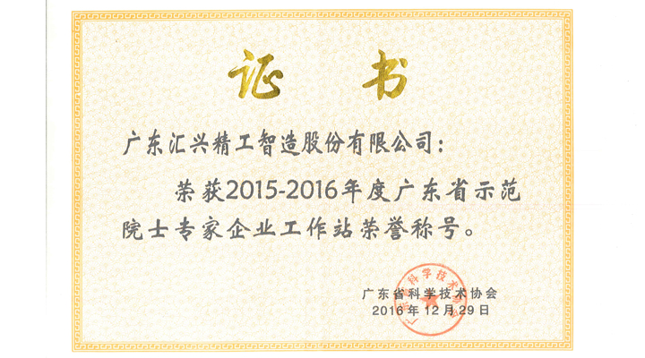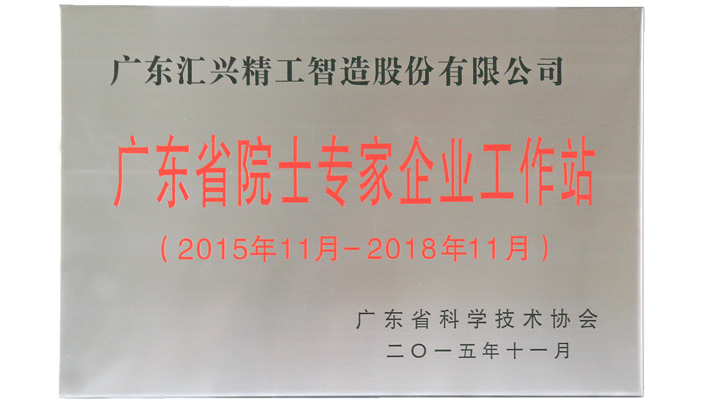 匯興智造廣東省示范院士專家企業工作站榮譽證書