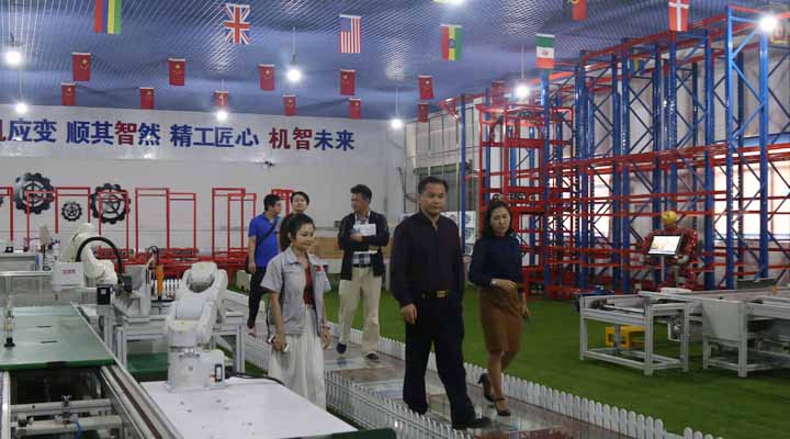 上市辦辛主任給王部長介紹匯興智造工業4.0體驗館