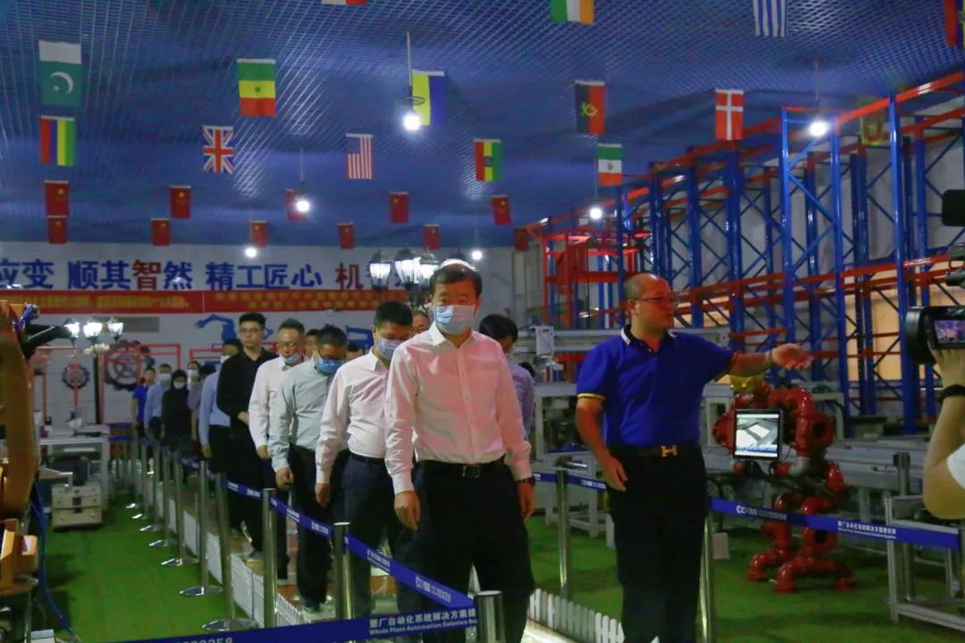 2020年11月4日上午,東莞市委副書記、市長肖亞非,市政協副主席、市統計局局長梁佳沂,市政府秘書長黃橋法、市城管局局長郭懷晉、市委組織部副部長趙毅,以及市直有關部門負責領導,來到匯興智造調研并看望慰問企業的優秀科技工作者。大嶺山鎮黨委書記張拔海、大嶺山鎮副鎮長王振江陪同調研。董事長鐘輝、總經理辛曼玉、董事鄧高全陪同參觀調研。