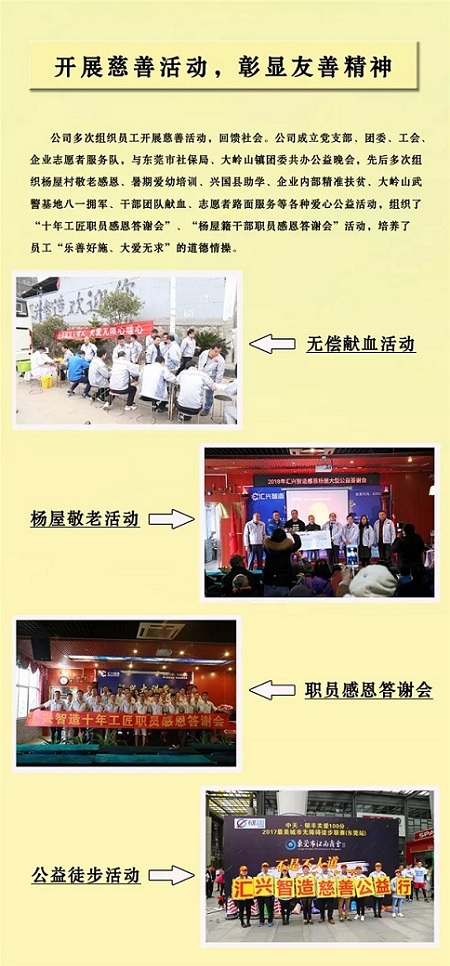 如果信念有顏色,那一定是中國紅!無償獻(xiàn)血是無私奉獻(xiàn)、救死扶傷的崇高行為,是我國血液事業(yè)發(fā)展的強大助力和保障。匯興智造作為東莞市首批10家“友善企業(yè)”之一,始終在堅持以人為本,注重人文關(guān)懷的同時,致力于將“友善”的價值觀、理念融入公司日常活動中,通過快樂工作,幸福生活的獨具特色的“友善文化”和“一個行業(yè) 一個家庭 一所學(xué)校 一支軍隊”的人文理念,把社會主義核心價值觀融入到員工思想教育工作之中;夯實“友善企業(yè)”基礎(chǔ)、打造“友善環(huán)境”陣地、構(gòu)建友善勞動關(guān)系。在點點滴滴中融合、滲透,全方位落地生根,營造和諧友善氛圍和人文環(huán)境,積極提升員工的幸福感和自豪感,讓員工在公司平臺上充分展現(xiàn)自我,實現(xiàn)自身價值,創(chuàng)享更加美好的生活。