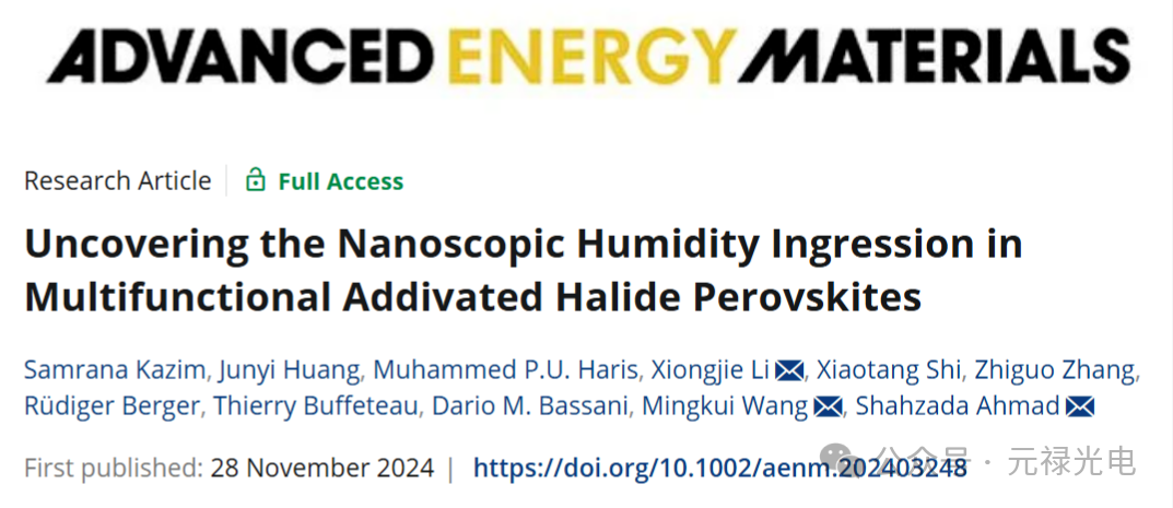 來(lái)自西班牙巴斯克材料應(yīng)用中心(BCMaterials)Samrana Kazim & Shahzada Ahmad,以及來(lái)自華中科技大學(xué)王鳴魁教授 & 李雄杰團(tuán)隊(duì)研究了含硫多功能添加劑對(duì)提高鈣鈦礦太陽(yáng)能電池效率和濕度穩(wěn)定性的影響。