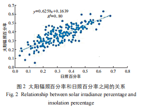 在推算年總太陽輻照量時,多是以季節的實測太陽輻照量數據與日照百分率等常規氣象數據來擬合得到經驗系數,從而計算得到理論年總太陽輻照量。